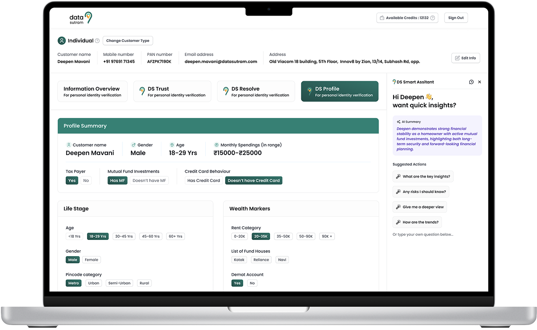 The AI-based DS Smarter Decisioning Platform empowers enterprises to manage the entire customer lifecycle with alternate data and actionable intelligence.